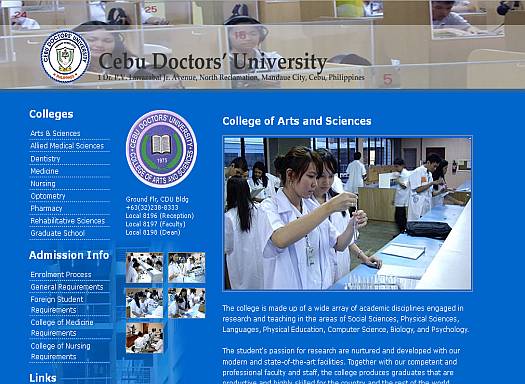 This is the corporate site of Cebu Doctors' University. It is an XHTML/CSS site with JQuery for the mega-menu.
