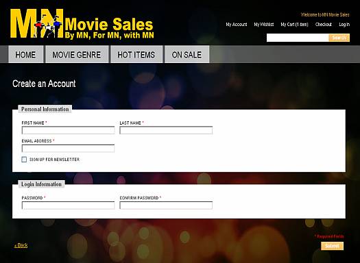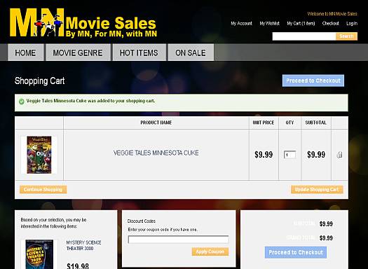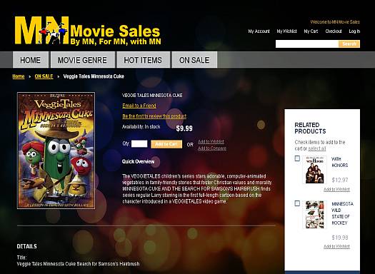 MN Movie Sales is an online video store based in Minnesota, USA. They sell various movie genres in several storage format type, such as DVDs or CDs. The site is powered by Magento with JQuery image slider on the main page to highlight the latest movies. Only registered members will have access to the shopping cart when buying items online.