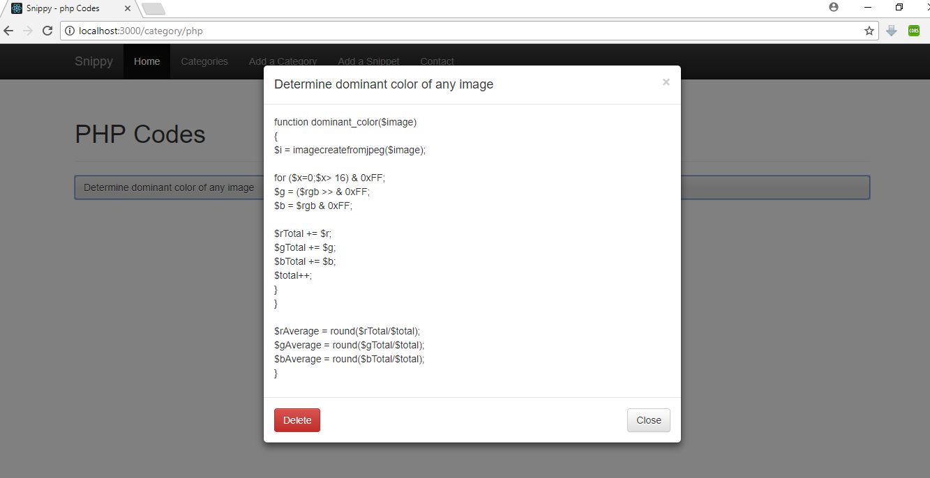 Snippy – A custom app for codes collection or repo coded in Node.js